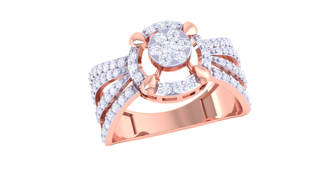 925 Silver Floral Cluster Engagement Ring โ Traditional Round Shape Couple Ring