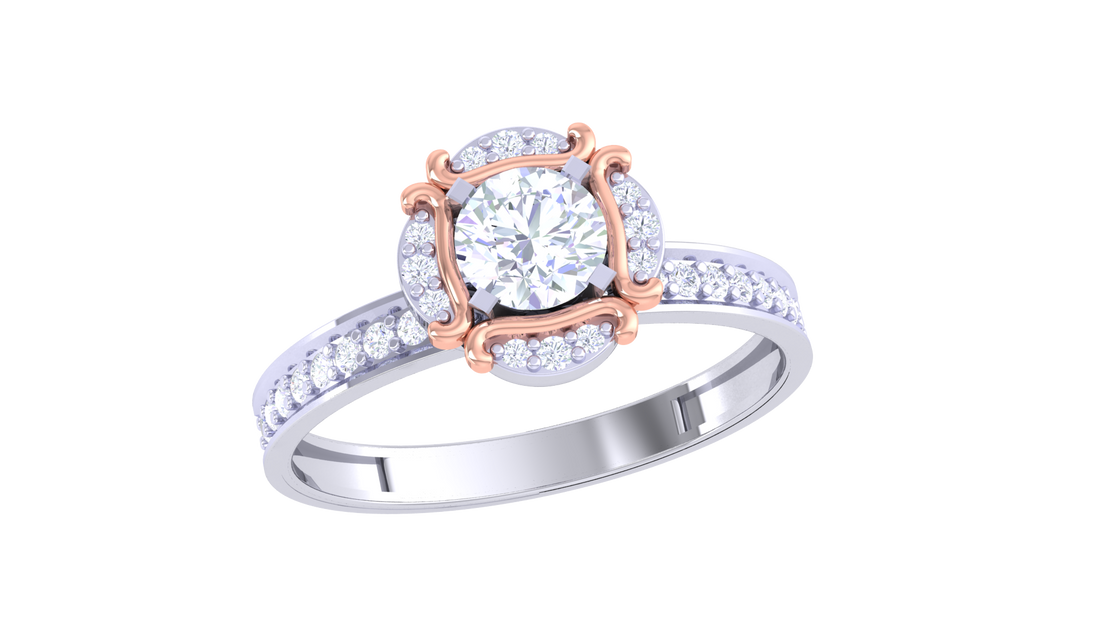 925 Silver Royal Round Solitaire Couple Ring โ Traditional Floral Crown Design