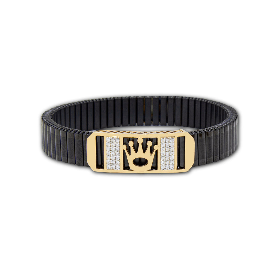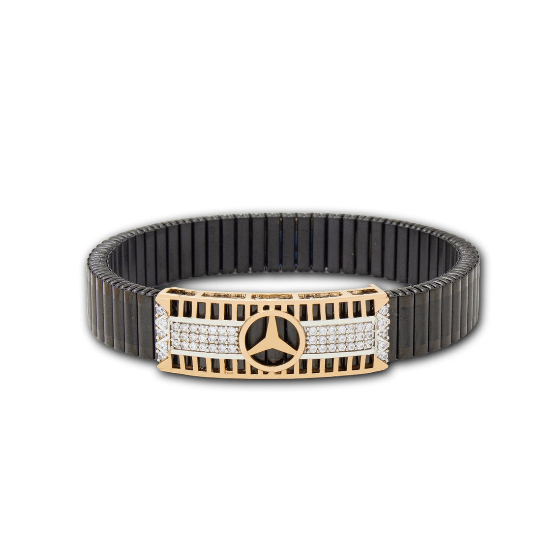 Marigold Traditional Shape Bracelet โ 925 Silver Black & Gold Emblem with Zircon