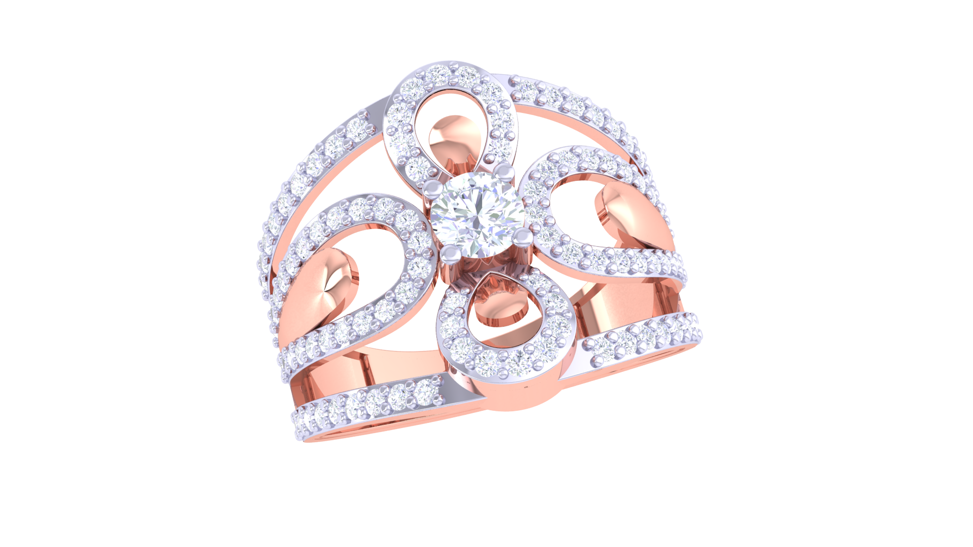 925 Silver Traditional Petal Couple Ring – Rose Gold Statement Band for Her