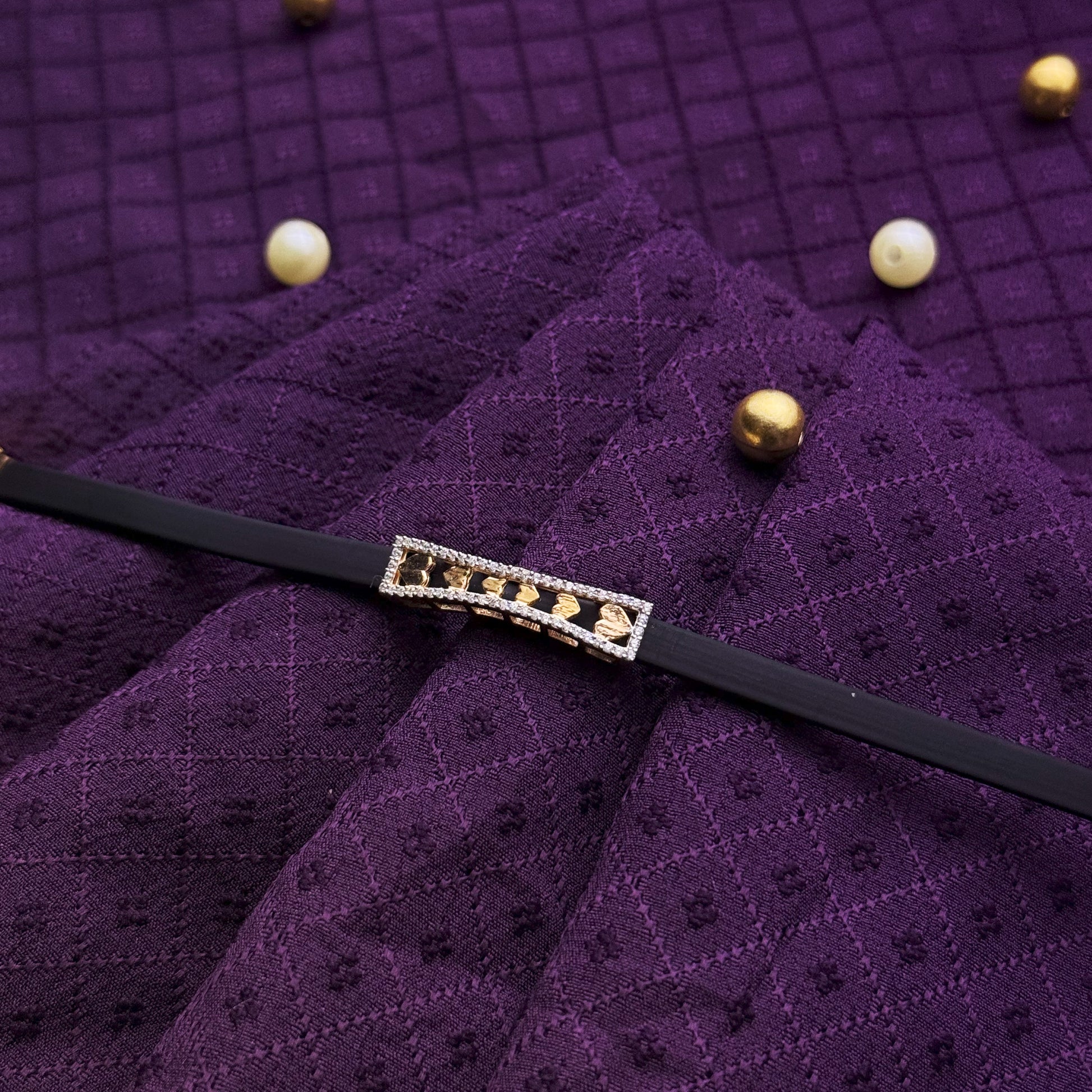 Crafted to symbolize deep affection and unbreakable bonds, this Rakhi is a heartfelt tribute to sibling love. The elegant row of golden heart motifs set in a dazzling CZ frame reflects warmth, loyalty, and enduring love. With its sleek black band and premium materials, this Rakhi brings together timeless design and contemporary flair for today’s sister who appreciates both style and sentiment.